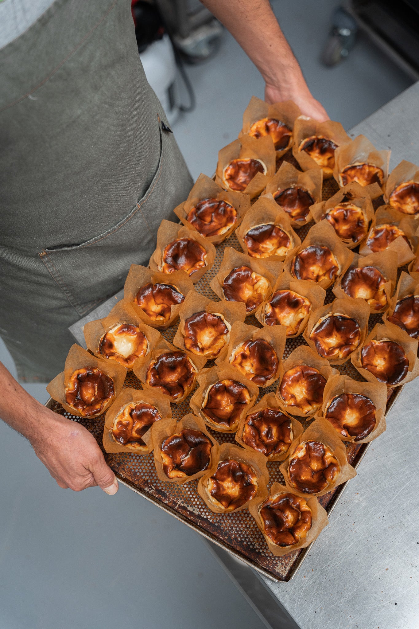Each cheesecake is prepared by hand using precise mixing and baking techniques, resulting in a deeply caramelised exterior and a smooth, velvety interior with subtle notes of vanilla and coffee.